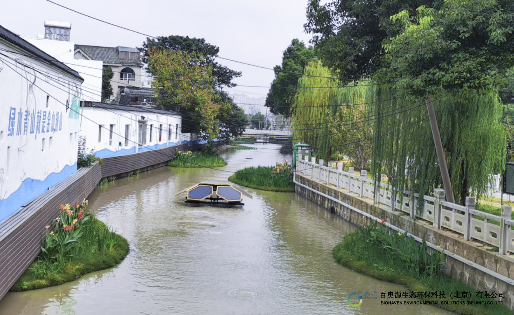 江蘇省無錫市梁溪區(qū)河道整治工程 項目地點:江蘇無錫 項目建設(shè)時間:2020年 應(yīng)用領(lǐng)域:河道水質(zhì)凈化,生態(tài)修復(fù),景觀提升 產(chǎn)品技術(shù):浮動濕地 在無錫梁溪區(qū)2019-2020年河道整治工程中,在截污、清淤、補綠及補水等工程措施的基礎(chǔ)上,應(yīng)用復(fù)合纖維浮動濕地、太陽能水循環(huán)復(fù)氧控藻設(shè)備進行河道水質(zhì)凈化、生態(tài)修復(fù)以及景觀提升,助力構(gòu)建水清、河暢、岸綠、景美的良好水生態(tài)體系。 上一篇 下一篇