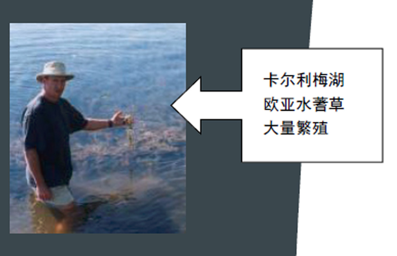 卡爾利梅湖位于加拿大魁北克省,水體面積22公頃,最大水深4.5米,平均水深3米。水體富營養(yǎng)化嚴(yán)重,藍(lán)藻爆發(fā),水體透明度低,歐亞水蓍草大量繁殖(每年需收割3-5次),鐵錳離子超標(biāo),硫化氫超標(biāo),水生植物種群數(shù)量少。