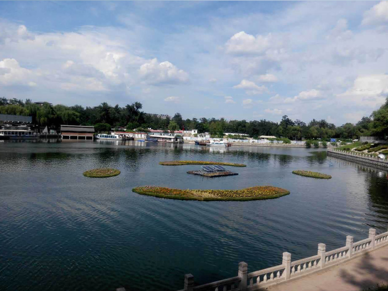 (4)浮動式生態(tài)凈水廠采用自然修復技術,在水質凈化的同時,也達到景觀效果提升,生態(tài)系統(tǒng)構建的作用。