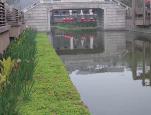 復(fù)合纖維浮動濕地與高效氣溶技術(shù)集成的生態(tài)曝氣氧化池應(yīng)用大大提升了單位水體容量的污染物削減能力,應(yīng)用于污水處理廠退水的升級改造,通過合理配置,結(jié)合人工濕地等工藝,在減少土地用量的同時,能夠?qū)⒊R?guī)排水提升到地表IV類水標(biāo)準(zhǔn)。